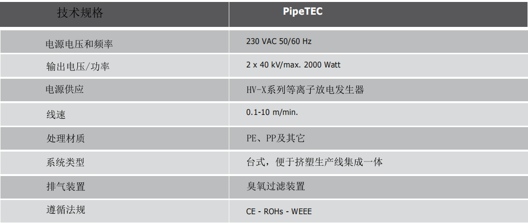 ·Efficient processing ·easy to use ·Integration with extrusion line ·Flexible design ·No grounding required ·Electromagnetic fixture device ·Pipe diameter ·Bipolar |