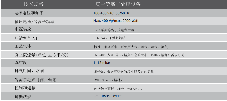 VacuTEC has simple operation, high reliability and fast processing speed. The process gas used in the treatment process can also be argon, oxygen and other gases, but in most cases, because conventional air can also generate powerful energy, you can achieve satisfactory treatment results without using these process gases.